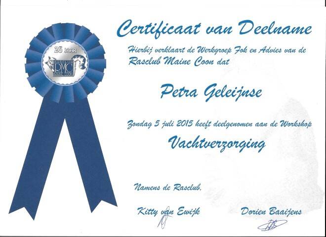 Petra heeft veel kennis van fokken omdat ze ook al jaren met hondjes fokt en veel ervaring heeft met katten fokken. Ze heeft vele cursussen gevolgd zoals Pawpeds G1, G2 en G3, Kattengenetica (Nok), cursus kittens flessen en vachtverzorging bij katten. De kennis zal uiteraard gedeeld worden met Lichelle.